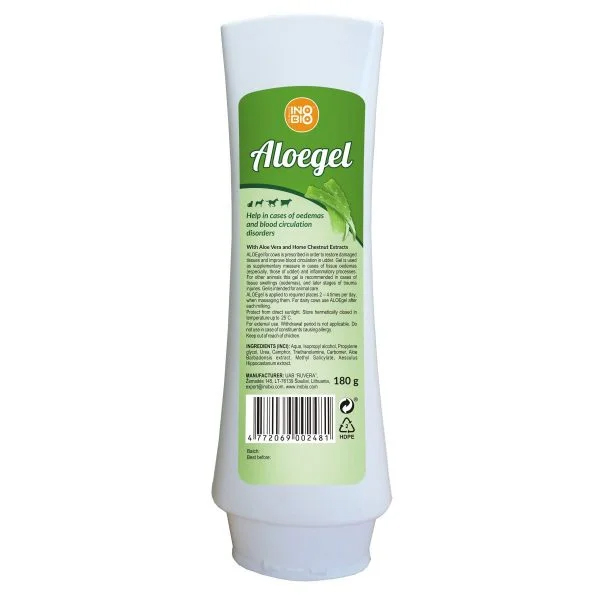 Aloegel se utilizează la bovine la nivelul ugerului pentru înbunătățirea circulației sanguine și pentru regenerarea țesuturilor lezionate. Gelul se utilizează ca terapie adjuvantă în caz de edeme tisulare și procese inflamatorii. La toate animalele, acest gel se recomandă pentru resorbția edemelor și pentru regenerarea tisulară în cazul leziunilor traumatice avansate.